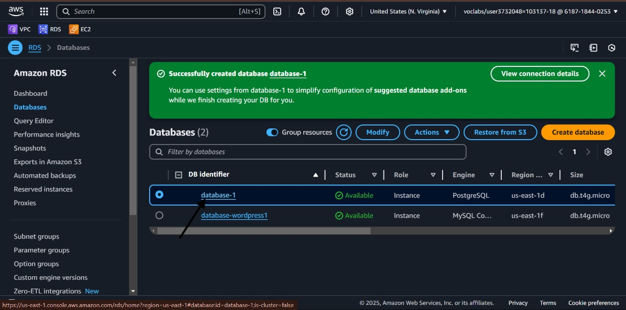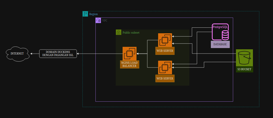 <?php// Informasi koneksi database$host = "alamat endpoint dari rds";$dbname = "nama DB yang dibuat";$user = "nama username rds";$password = "password rds";if ($_SERVER["REQUEST_METHOD"] == "POST") {// Menghubungkan ke database PostgreSQL$db = pg_connect("host=$host dbname=$dbname user=$user password=$password");// Mendapatkan id_barang yang dikirim oleh form$id_barang = $_POST['id_barang'];// Mengurangkan stok produk dalam database$query = "UPDATE barang SET stok = stok - 1 WHERE id_barang = $id_barang";pg_query($db, $query);// Tutup koneksi databasepg_close($db);}// Query untuk mengambil daftar produk$db = pg_connect("host=$host dbname=$dbname user=$user password=$password");$result = pg_query($db, "SELECT * FROM barang order by id_barang asc");?><!DOCTYPE html><html lang="en"><head><meta charset="UTF-8"><meta name="viewport" content="width=device-width, initial-scale=1.0"><title>mytoko</title><link rel="stylesheet" href="https://cdn.jsdelivr.net/npm/bootstrap@5.3.0/dist/css/bootstrap.min.css"><link rel="stylesheet" href="style.css"></head></head><body><div class="container"><h1>Selamat datang di mytoko</h1><table class="table"><thead><tr><th>ID Barang</th><th>Nama Barang</th><th>Harga Barang</th><th>Stok</th><th>Gambar Barang</th><th>Action</th></tr></thead><tbody><?phpwhile ($row = pg_fetch_assoc($result)) {echo '<tr>';echo '<td>' . $row['id_barang'] . '</td>';echo '<td>' . $row['nama_barang'] . '</td>';$harga_rupiah = 'Rp. ' . number_format($row['harga_barang'], 2, ',', '.');echo '<td>' . $harga_rupiah . '</td>';echo '<td>' . $row['stok'] . '</td>';echo '<td>' . $row['gambar_barang'] . '</td>';echo '<td>';echo '<form method="post">';echo '<input type="hidden" name="id_barang" value="' . $row['id_barang'] . '">';echo '<button type="submit" class="btn btn-primary">Beli</button>';echo '</form>';echo '</td>';echo '</tr>';}?></tbody></table></div></body></html>