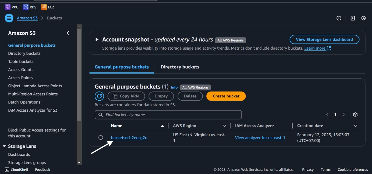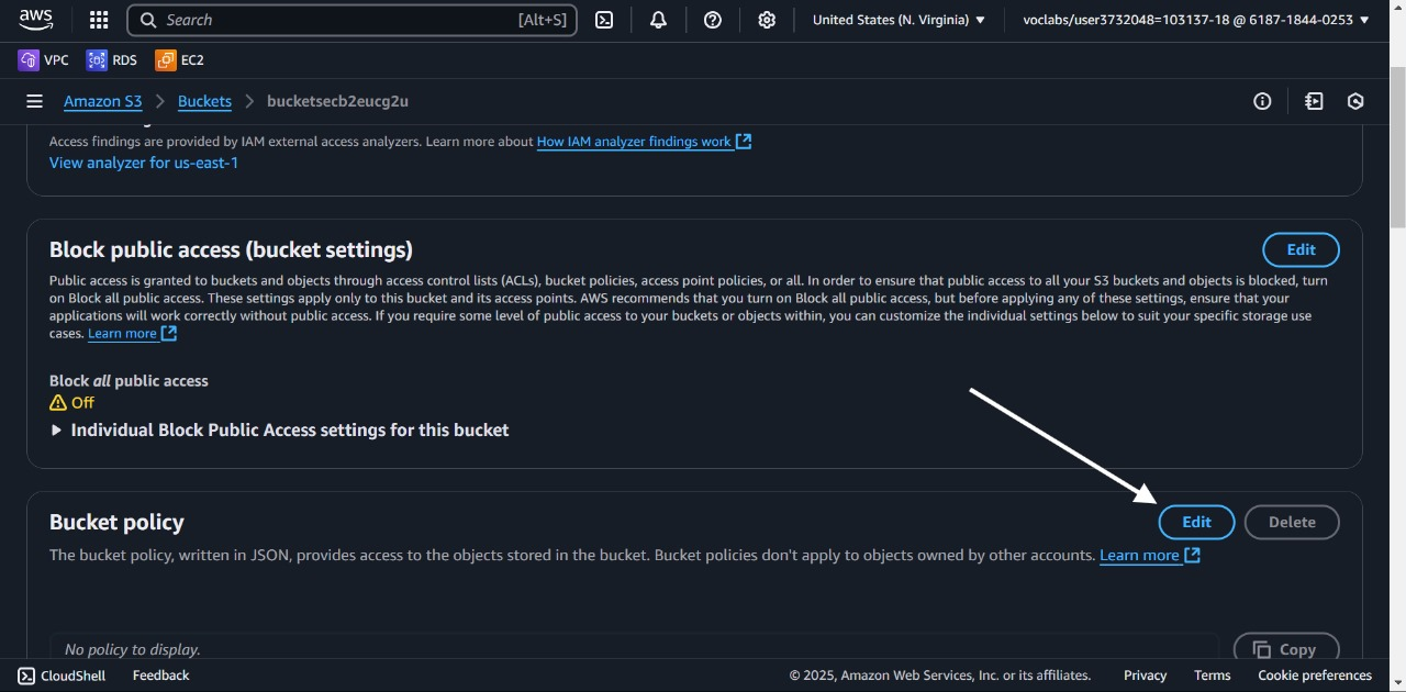 9. Ganti "arn:aws:s3:::Bucket-Name/*" dengan "arn:aws:s3:::s3namasiswa-latihanukk2025/*"