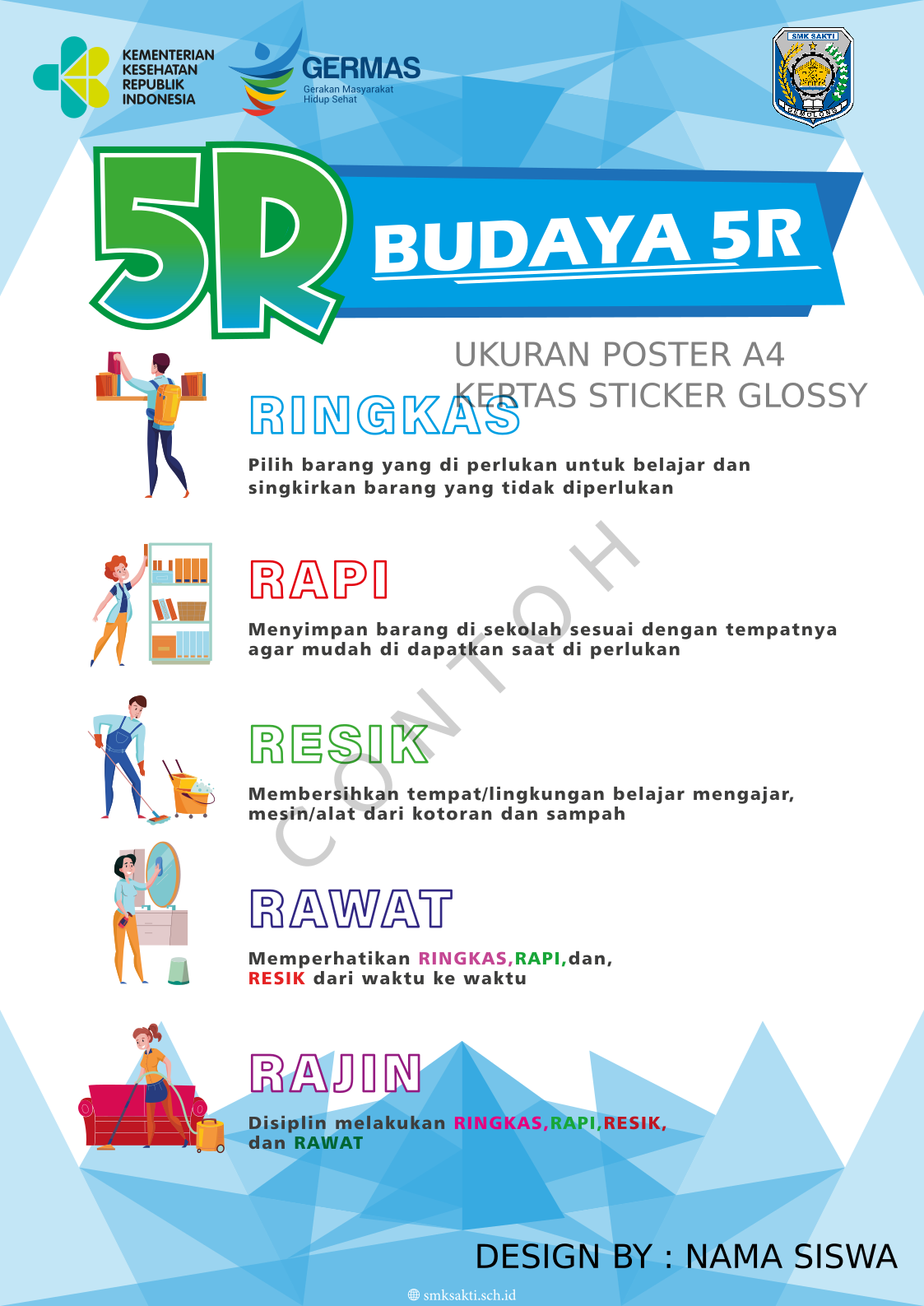 Dalam menjalankan kegiatan sehari-hari di lingkungan sekolah, sangat penting untuk membentuk dan memelihara budaya yang mendukung prinsip-prinsip keberlanjutan. Salah satu pendekatan yang dapat membawa perubahan positif adalah dengan mengadopsi budaya 5R, yang melibatkan konsep Ringkas, Rapi, Resik, Rawat, dan Rajin.