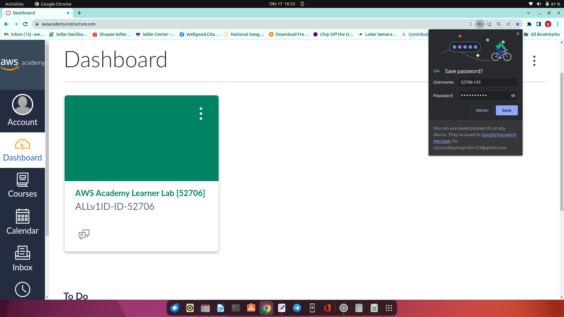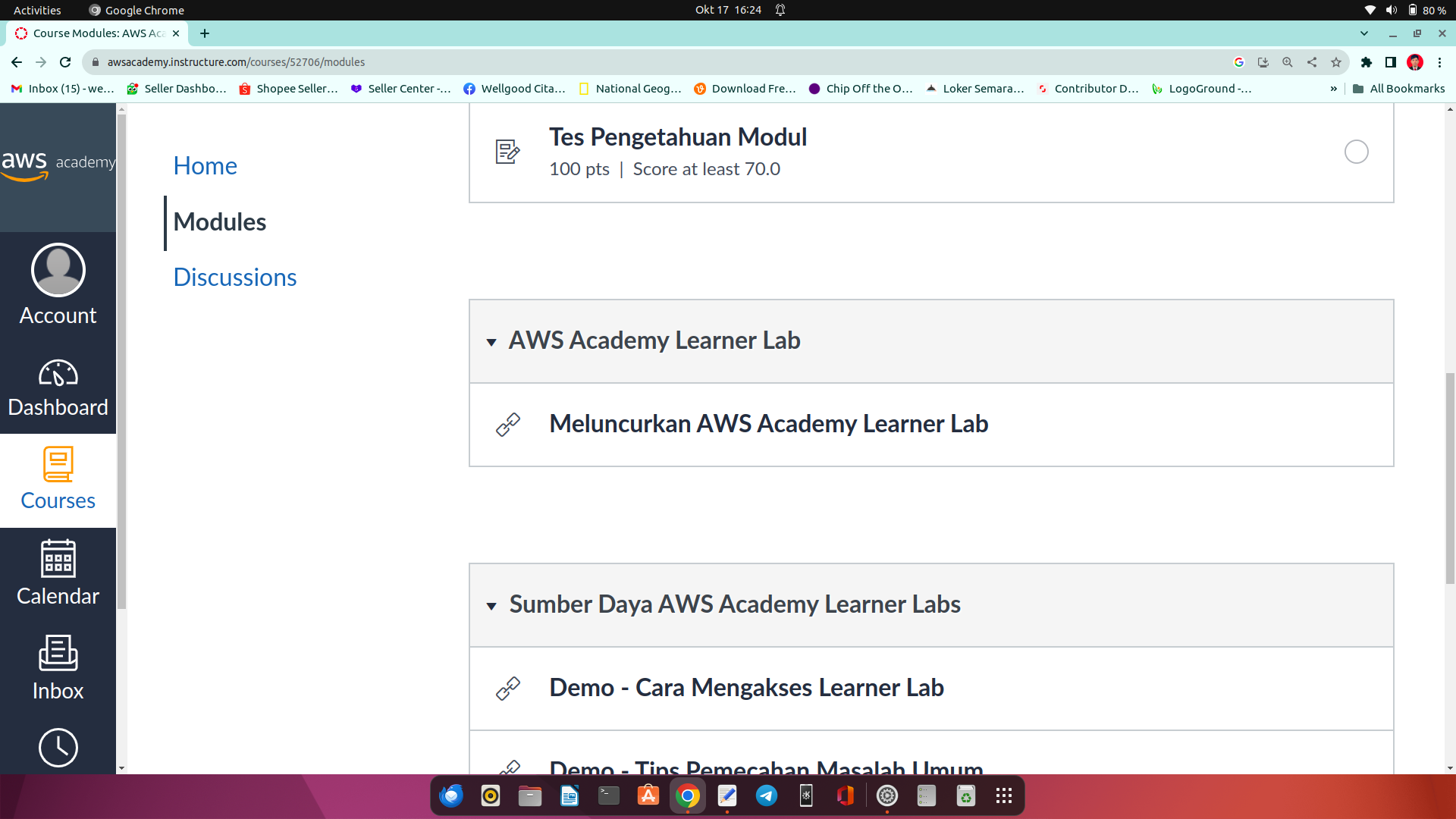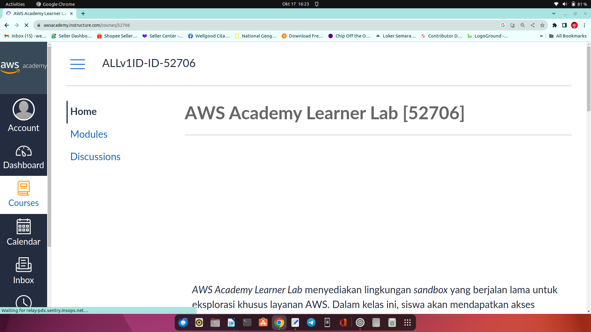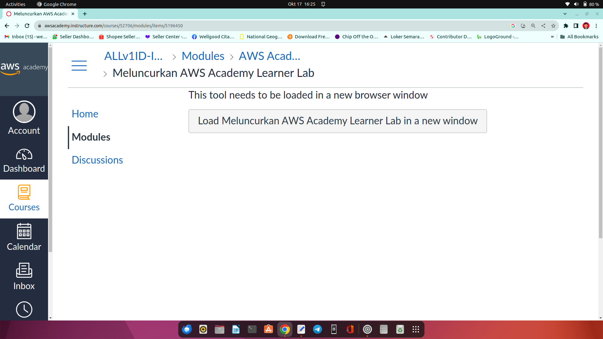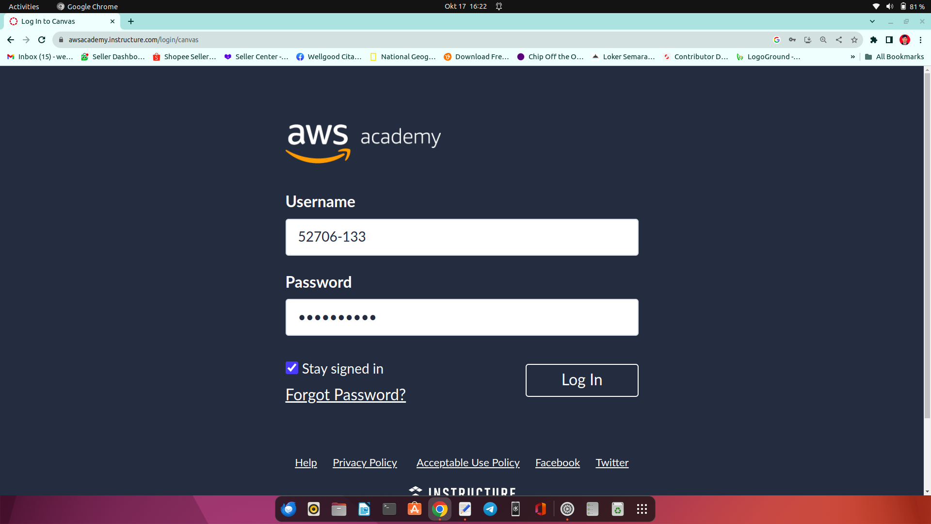 1.login akun aws di url berikut : https://awsacademy.instructure.com/login/canvas