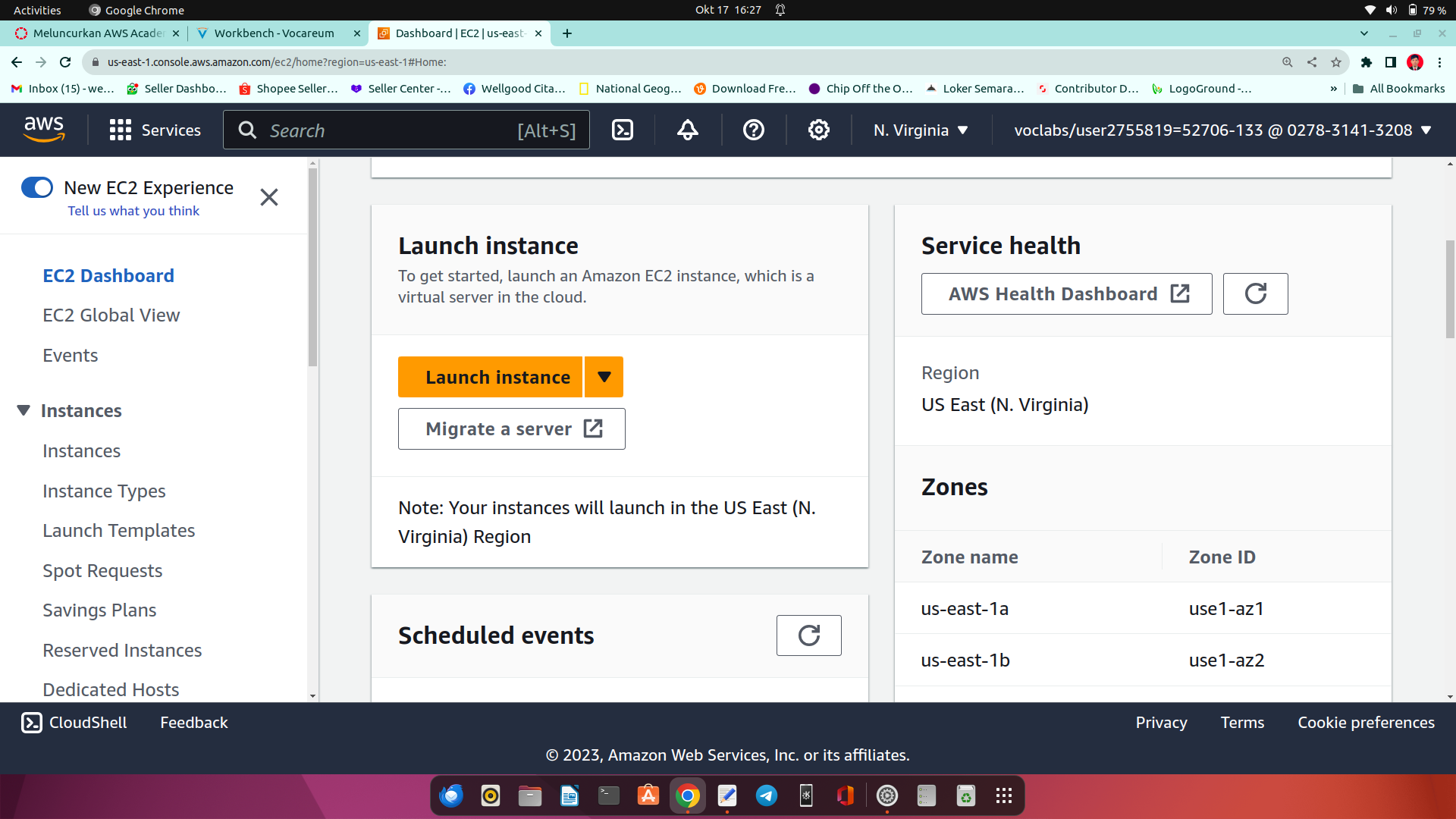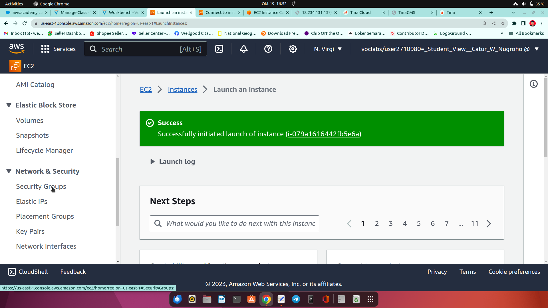 14.setelah berhasil, lalu ke menu EC2 Dashboard, lalu scroll sedikit ke bawah, cari Launch Instance dengan block warna