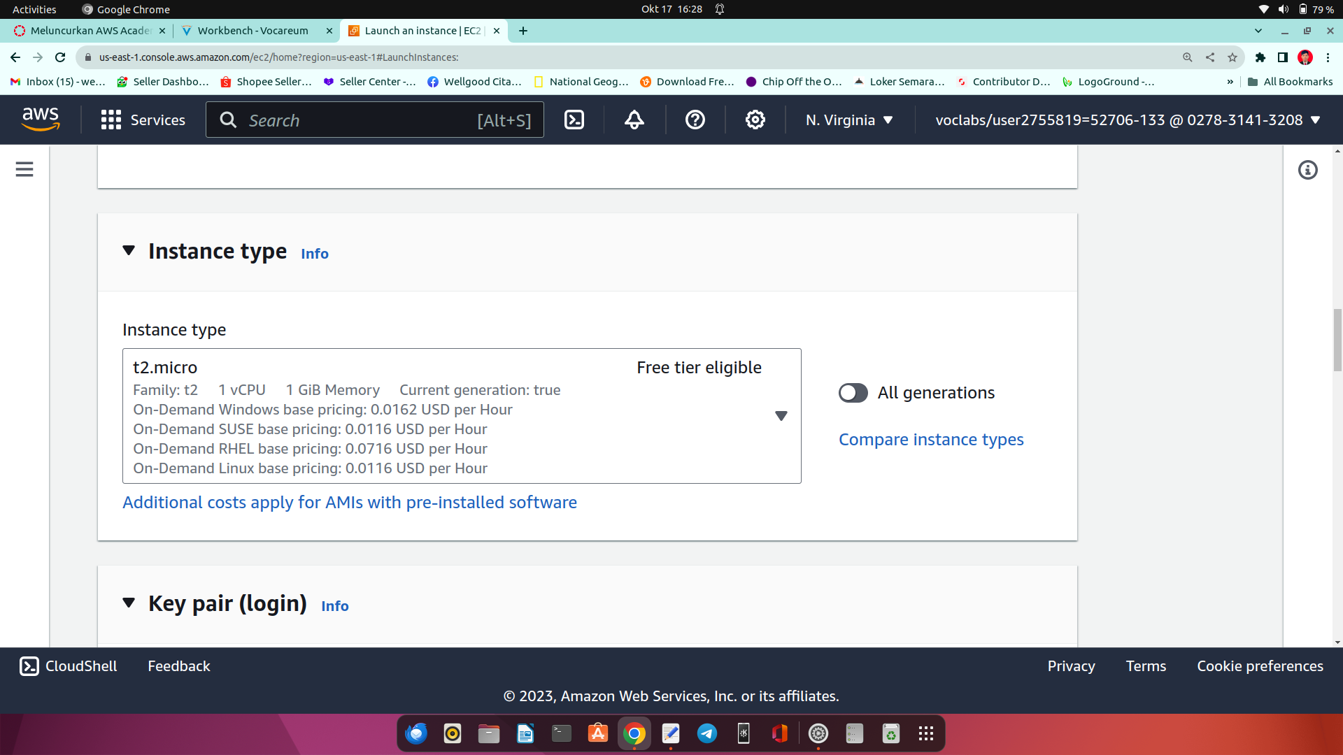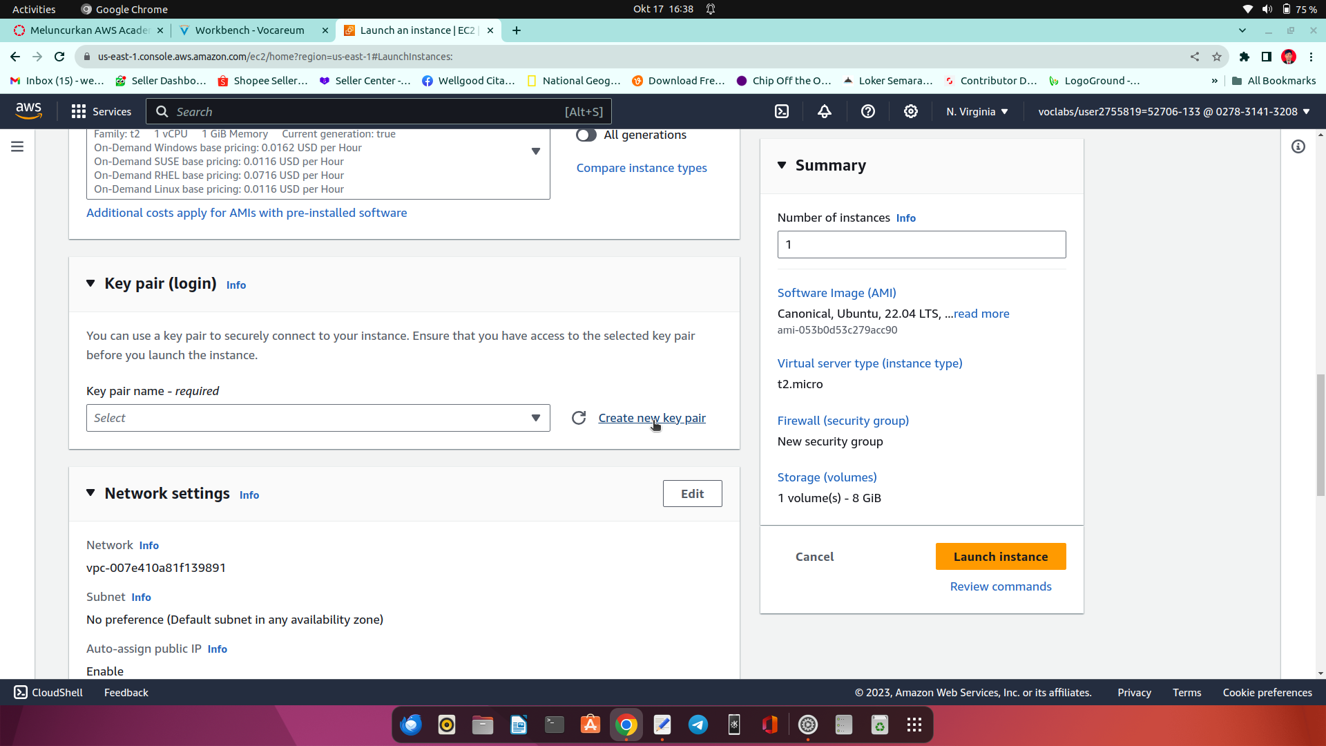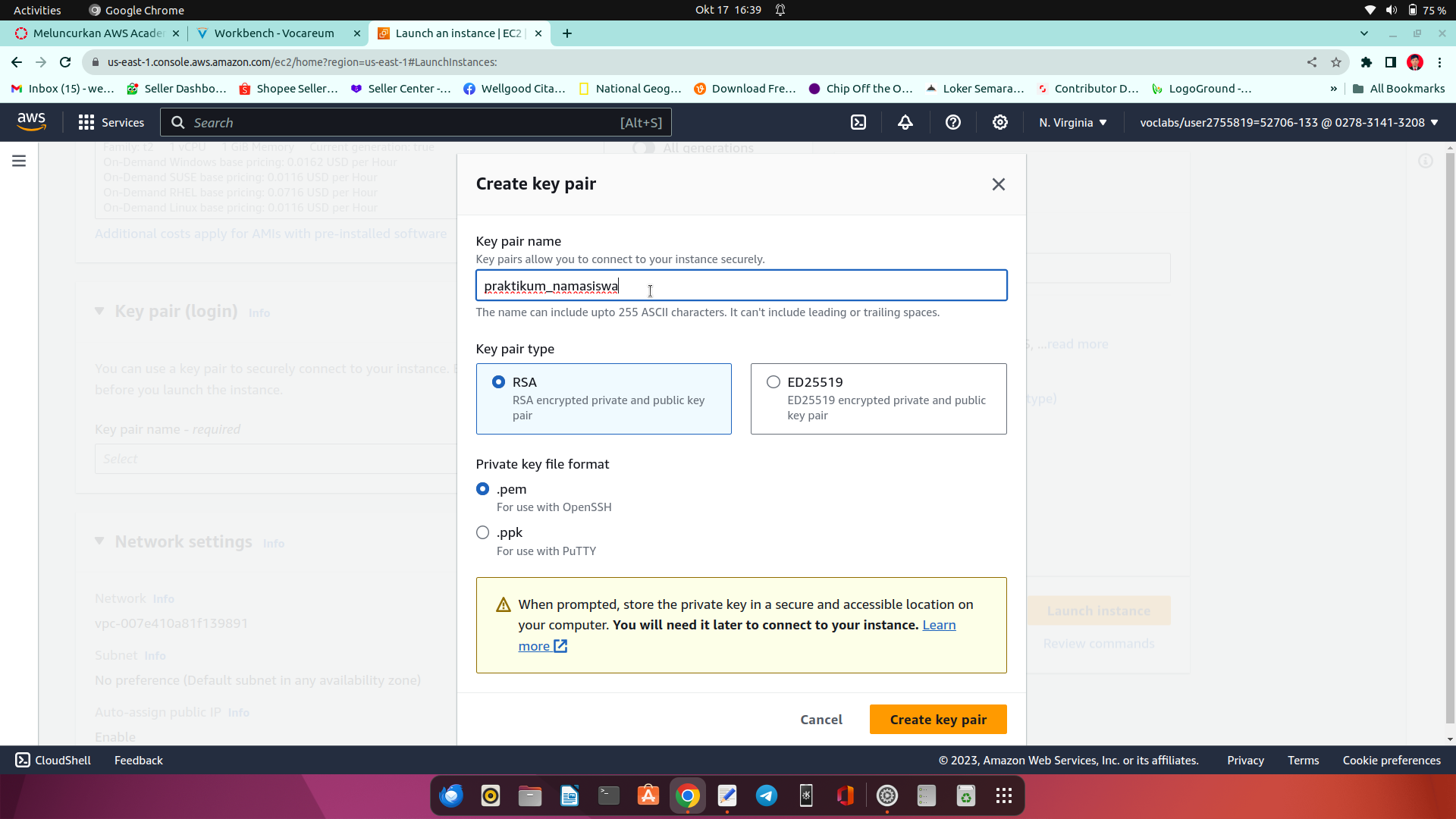 16.pada bagian keypair kita klik create new keypair