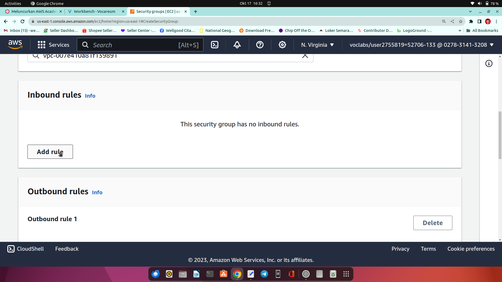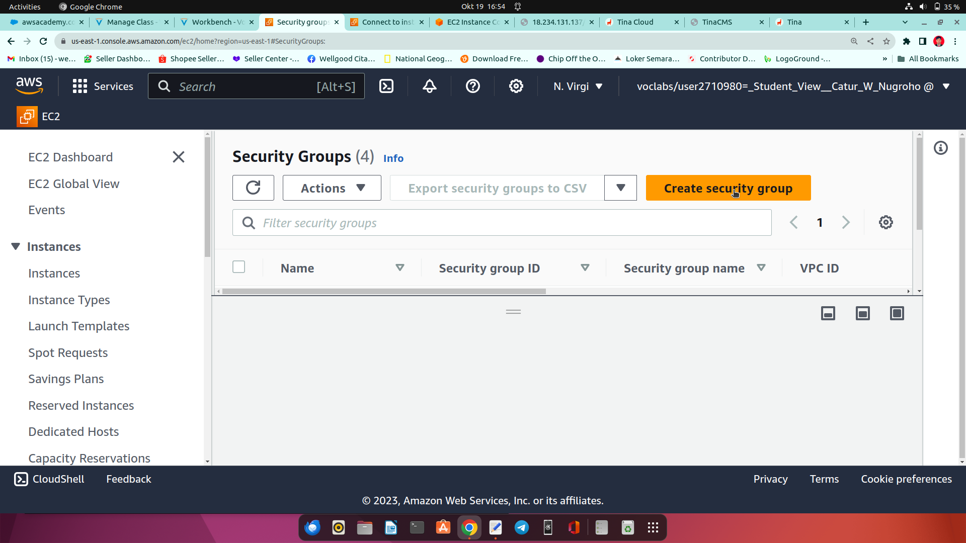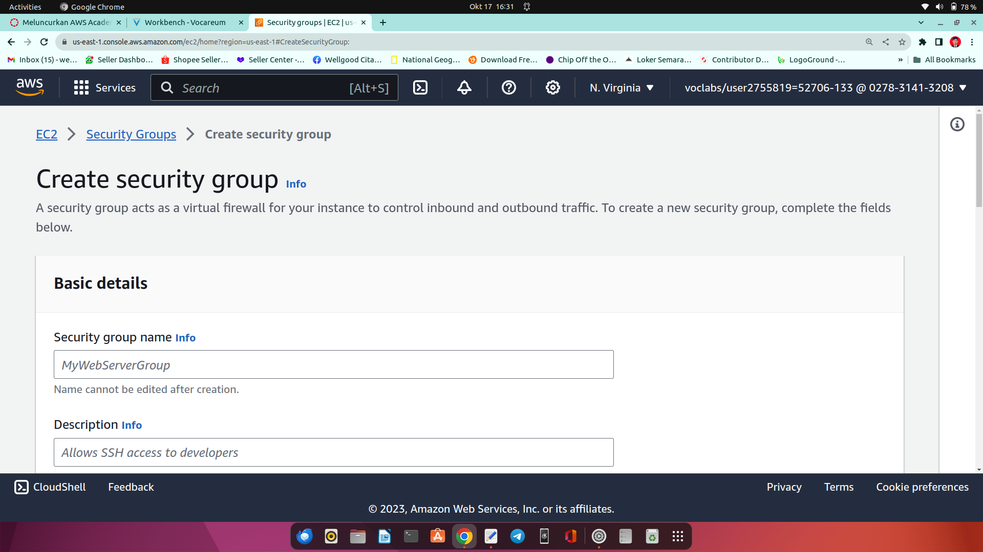 11.pada menu security group setting dengan benar. di isi nama, deskripsi, inbound rules