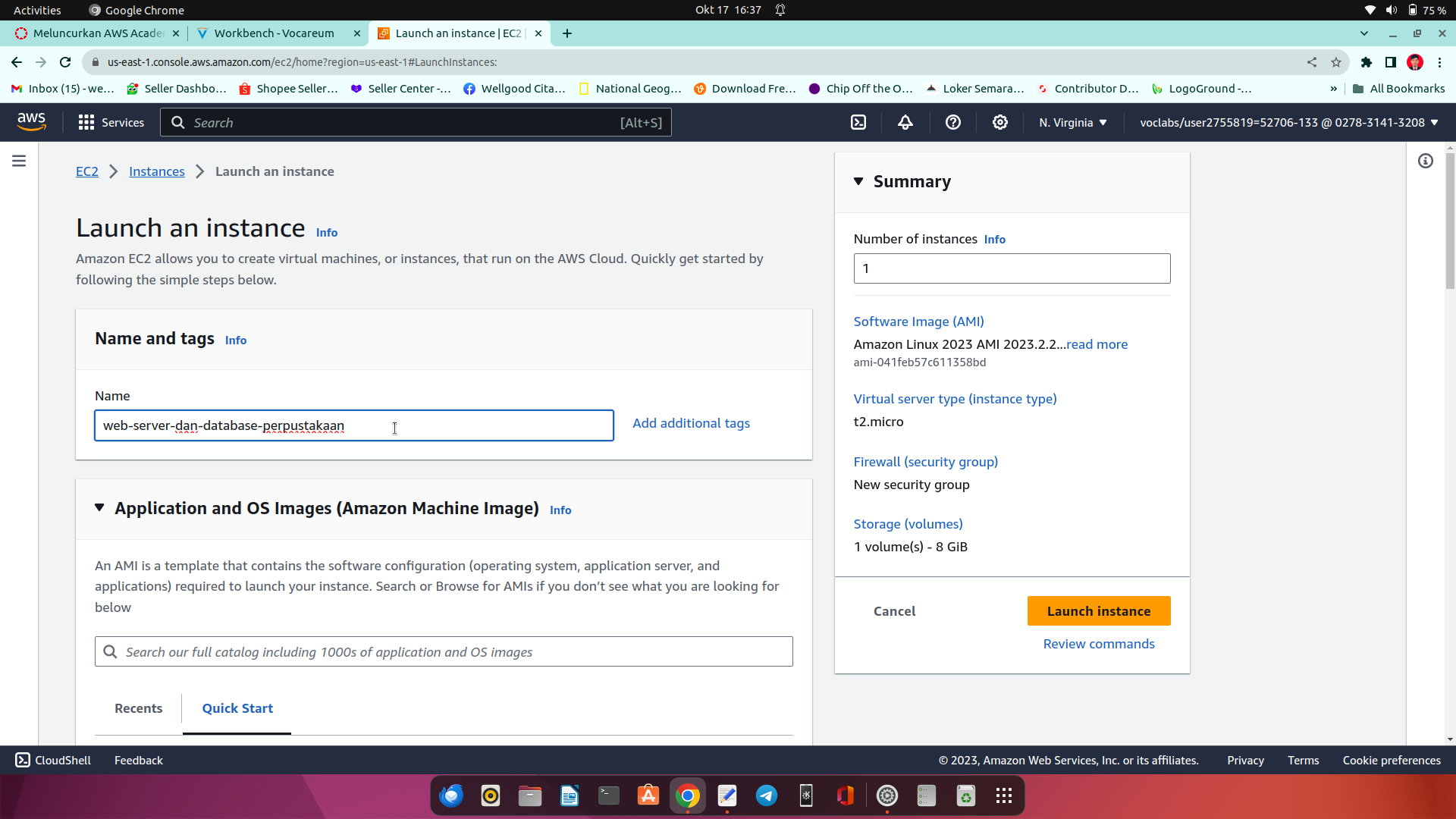 4.klik meluncurkan aws dibawah ini
